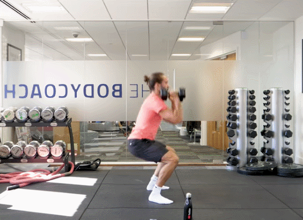 动作四:哑铃助力蹲推