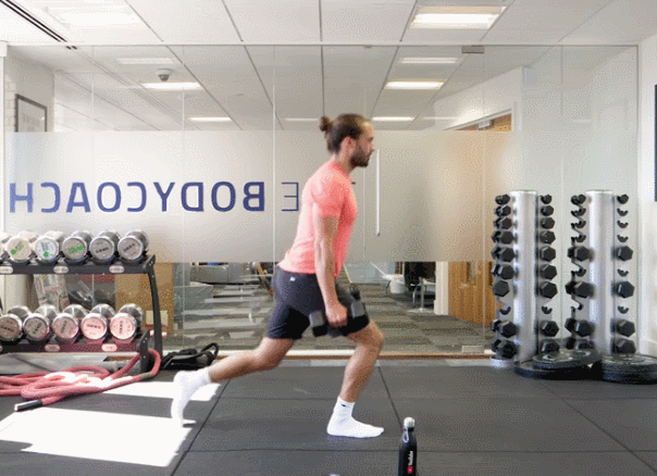 动作三:哑铃向后箭步蹲