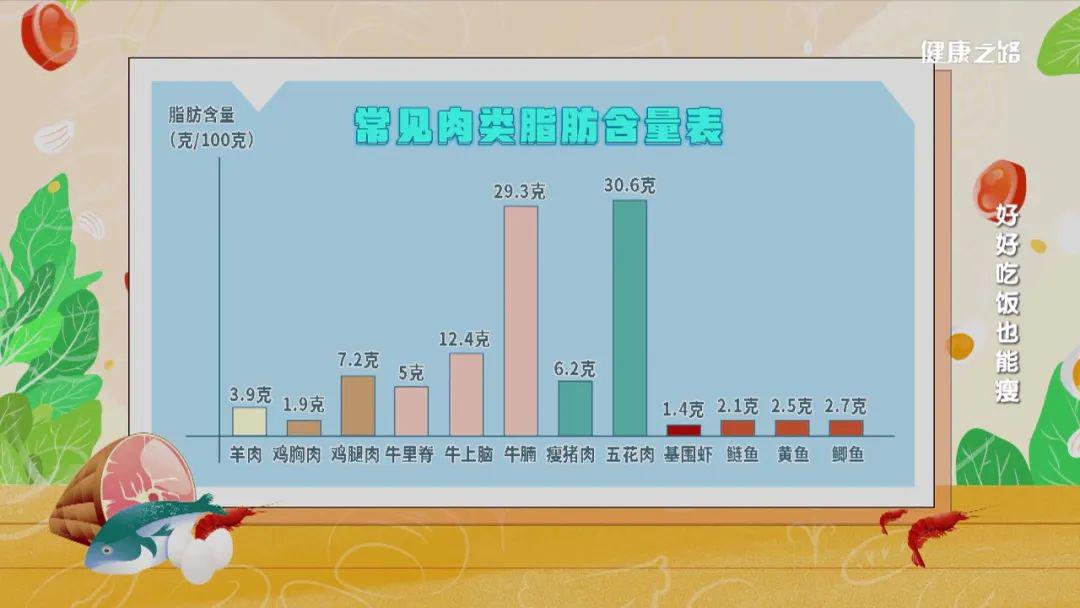 脂肪含量高的肉类,比如五花肉,要控制摄入量。25克五花肉,可以置换:50克瘦肉、100克纯虾肉或者100克鱼肉。