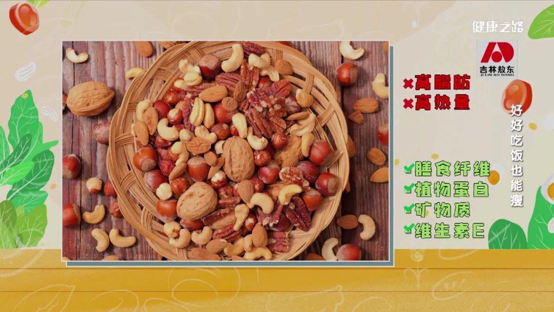 坚果脂肪含量、热量较高,但营养丰富,两餐之间适量吃些坚果可缓解饥饿感。
