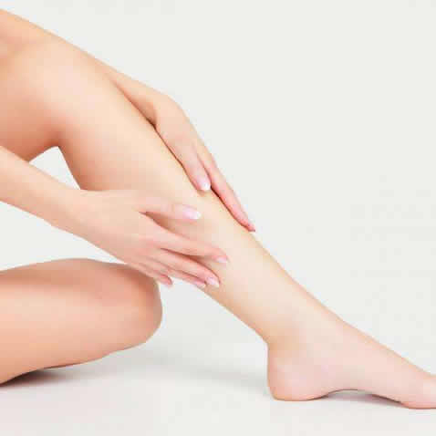 取适量的按摩霜(或者各种有润滑作用的乳液、身体油)摩擦小腿部位,自下而上;要来回上下反复摩擦。