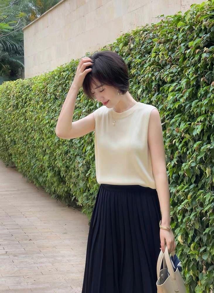 无袖衣本身是很优越的,无袖的设计看似简单,但露出的手臂会给人很舒适的清爽的感觉。不同于吊带的性感,无袖衣更多的是“纯欲”,优雅又有女人味儿,这样的风格就决定了无袖衣是不受年龄限制的一件单品,不同年龄段穿都会有不错的果。不过很多手臂或者上身比较胖的女性不敢去尝试无袖衣,觉得贵驾驭不了。