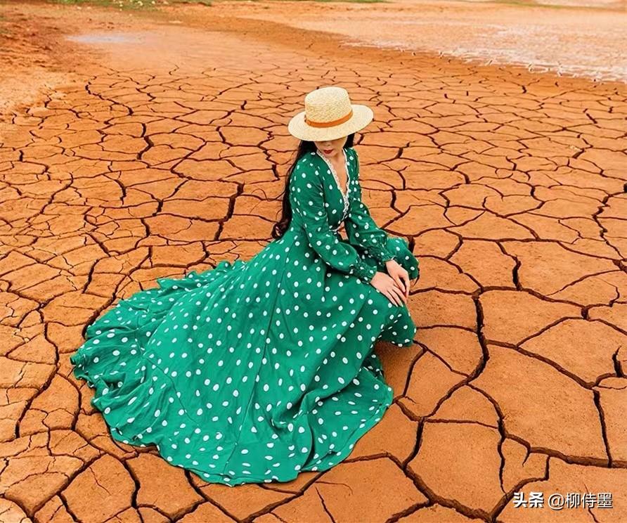穿着长裙拍照,长裙垂坠的质感,很容易塑造出身体的线条;