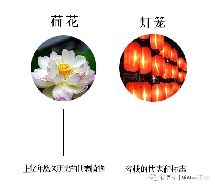 设计采用了客栈的标志灯笼和美而有历史的荷花
