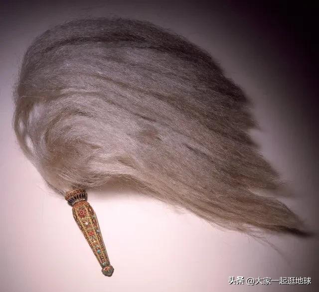牦牛尾毛拂尘,手柄镶嵌宝石。尼泊尔,1800 年左右。