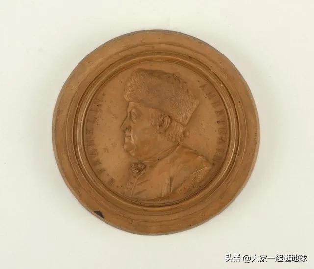 纯金奖章,上面有本杰明·富兰克林的侧面肖像,戴着毛皮帽,1777 年。
