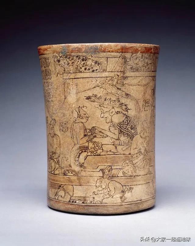 普林斯顿花瓶,一种盛放巧克力的容器,属于一位名为 Muwaan K'uk 领主的。花瓶描绘了丰收的场景。