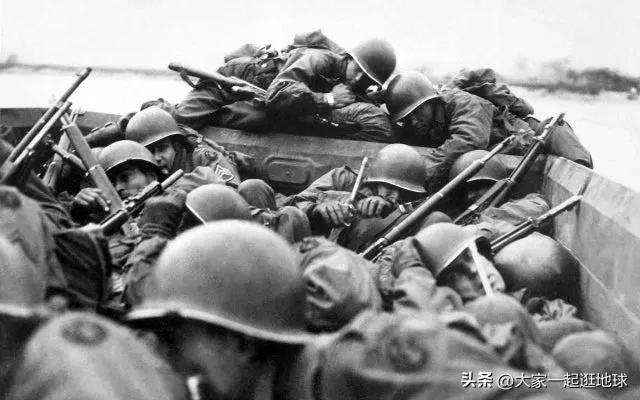 美国士兵在德国圣戈尔,冒着敌人的火力穿越莱茵河;1945 年 3 月。