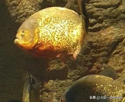 在马耳他水族馆,看到一只红腹食人鱼,发出金色的光。