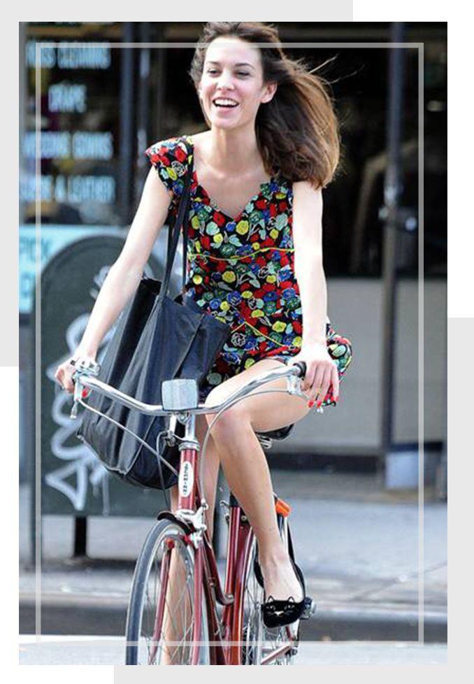 碎花也算是复古风中一种元素,随风飘扬的长发加上脚踏车,简直就让人浮想联翩,韵味十足。