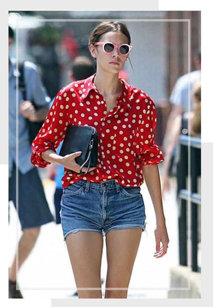 圆点红色衬衫搭配牛仔,味道是上世纪30年代街头的味道,但是被她穿出来的感觉却又那样不适现代感。