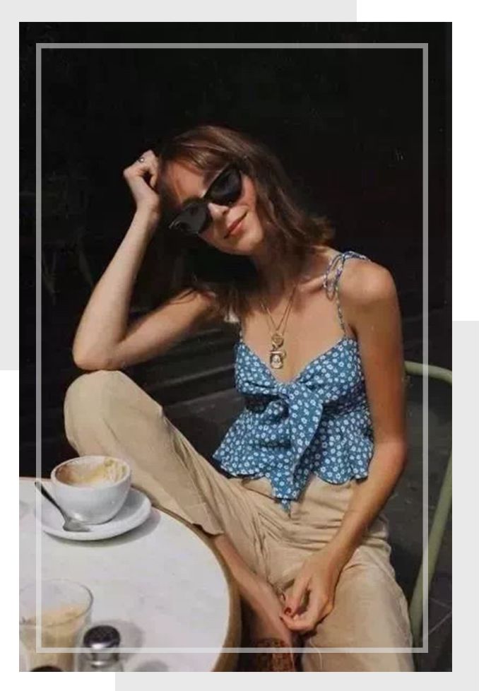 经典的的吊带+阔腿裤的搭配充满vintage风,妥妥的法式浪漫穿搭。鲜艳而活泼,魅力而优雅。