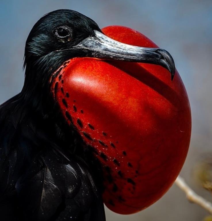 厄瓜多尔军舰鸟,雄性在繁殖季节会鼓起红色的喉囊来争取被雌性关注。