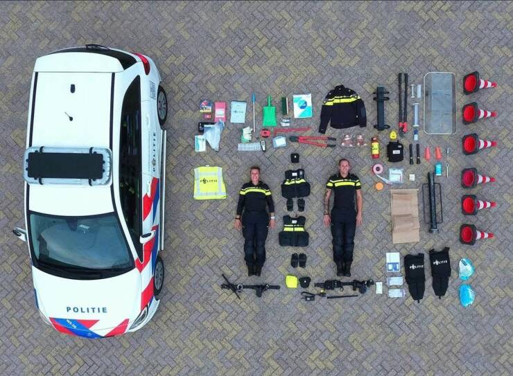 荷兰警车的详细装备,没有水瓶是因为那里到处是可饮用的自来水。