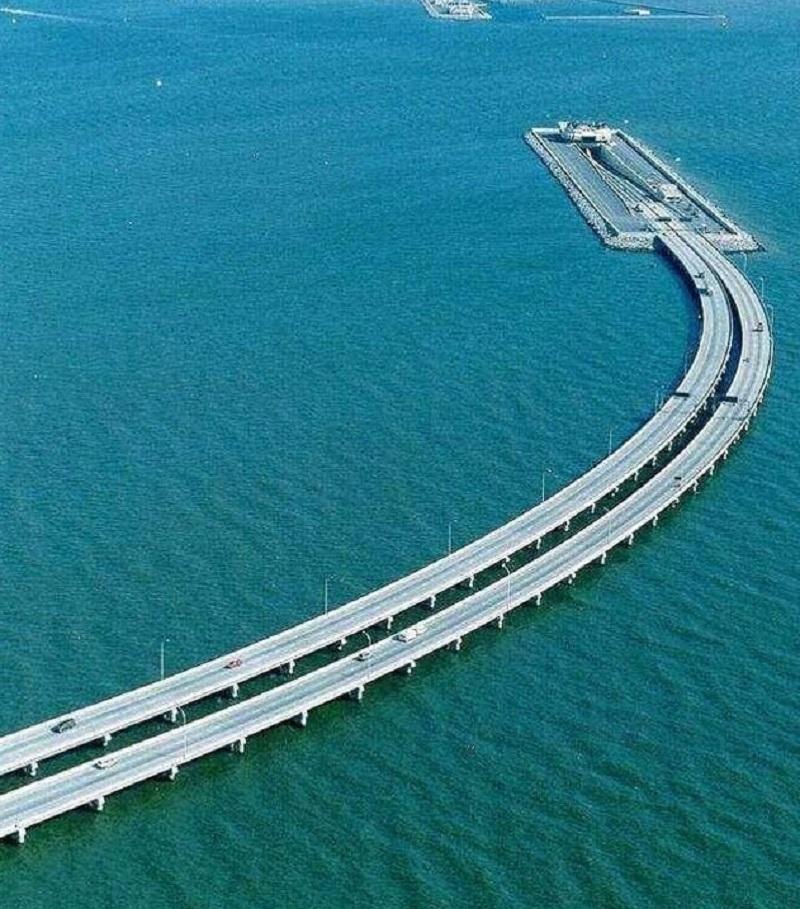 为了给造船厂留出航道,美国这架桥梁在海上进入隧道。