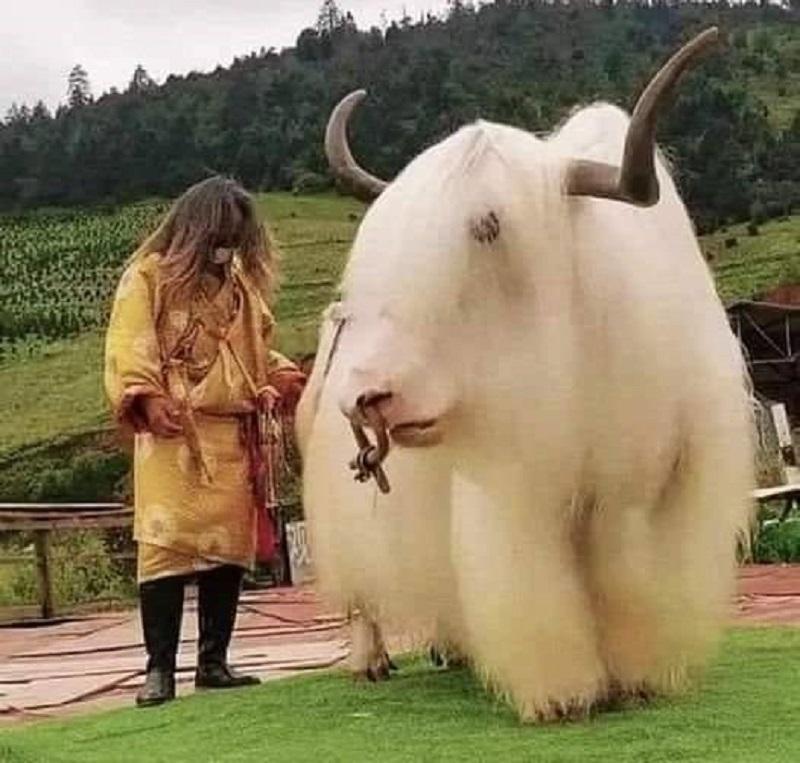 西藏白牦牛的毛发浓密蓬松,洁白如玉,真是太好看了。