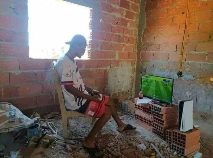 很多巴西人都靠踢球走出了贫民窟,这位巴西老兄估计也这么想。