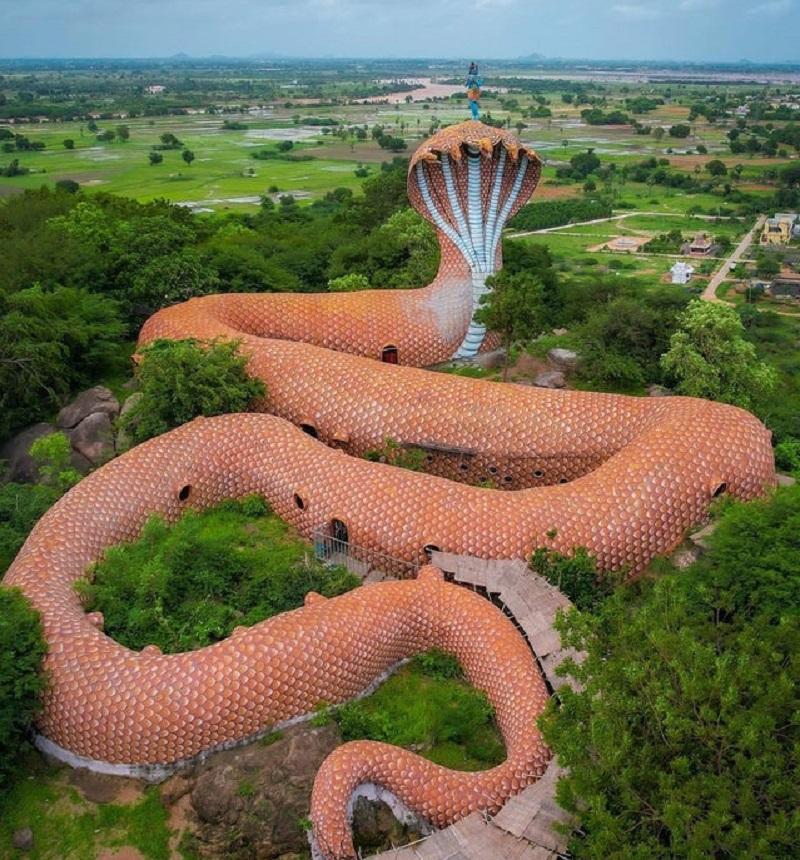 印度的巨蛇神庙,通过腹部的入口进去后可以看到关于蛇神的传说。