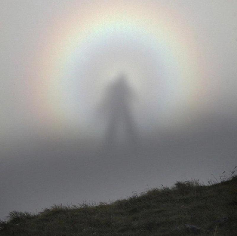 山顶的“巨人”其实是投射在低空云层中的一道人影。