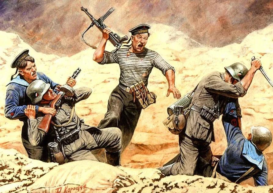 到了第二次世界大战,主战场大部分在陆地,而且当时苏联海军的舰队常常被德军封锁在海港内不得动弹,许多舰艇被击沉,众多港口陆续沦陷,海军大部分时间只能蜷缩在海港里。但这岂是战斗民族的作风,于是数十万勇敢的海军战士自觉扛着枪参加了陆上的战斗。