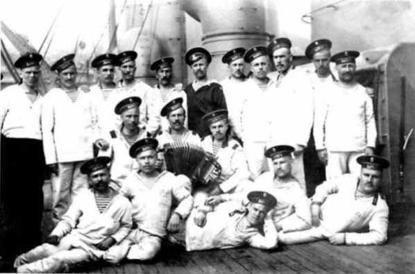 1917年俄国国内爆发十月革命,海魂衫的意义发生了360度的转变。波罗的海舰队水兵们为了加入革命,端起步枪冲上陆地战场英勇战斗。于是,这些穿着海魂衫的水兵们成了“革命守护神”的象征。