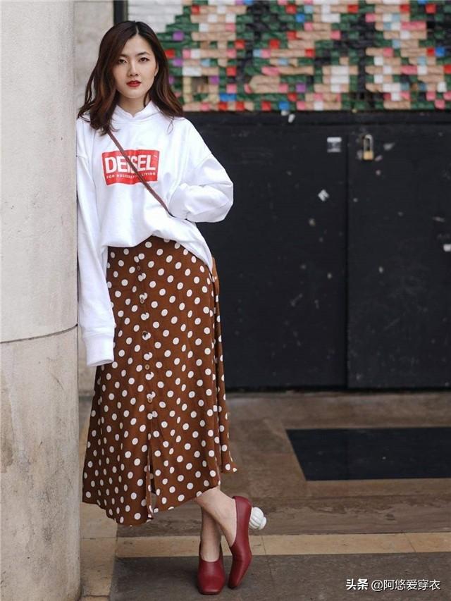 屁股大的女性很适合这样的包臀裙,性感又有风情感,卫衣还能遮住拜拜肉等赘肉,可以说是显瘦减龄的穿搭了。
