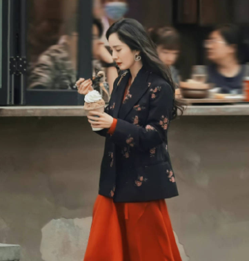 近日,杨幂新剧《爱的二八定律》花絮照曝光,引发网友热议。照片中,杨幂一头乌黑的长发随风飘动,唯美五官配上精致妆容,白皙的皮肤、纤细娇柔的手指、光滑细腻的双腿好养眼。她穿着一袭印花黑色西装搭配时尚红裙,又美又飒,妥妥的大美女,真的好惊艳。