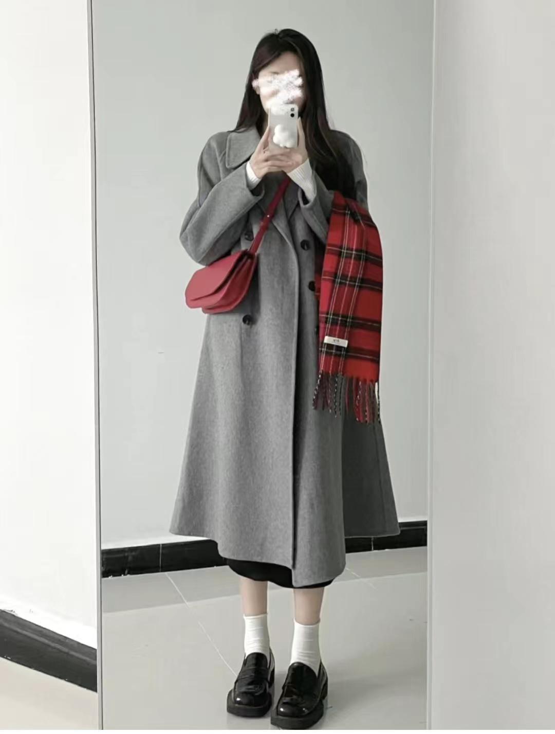 没想到灰色跟红色这么配,而且很特别,灰色大衣有种清冷气质的感觉,但是搭红色围巾就感觉暖暖的~