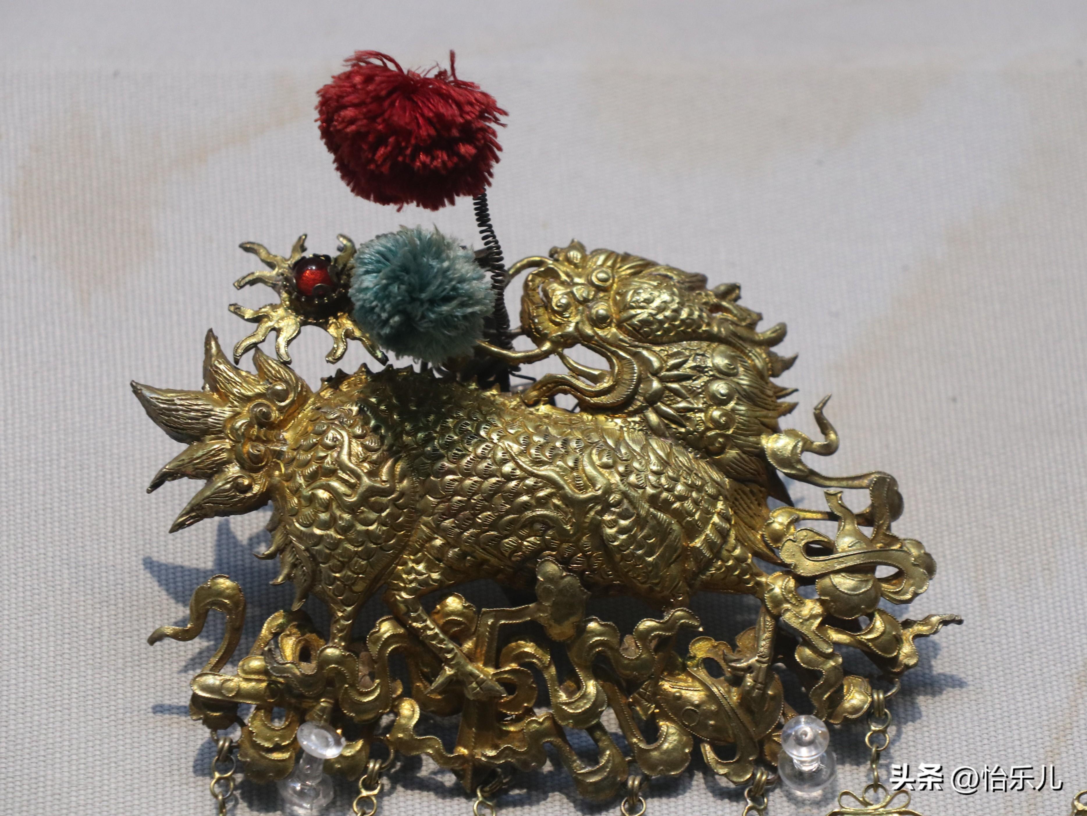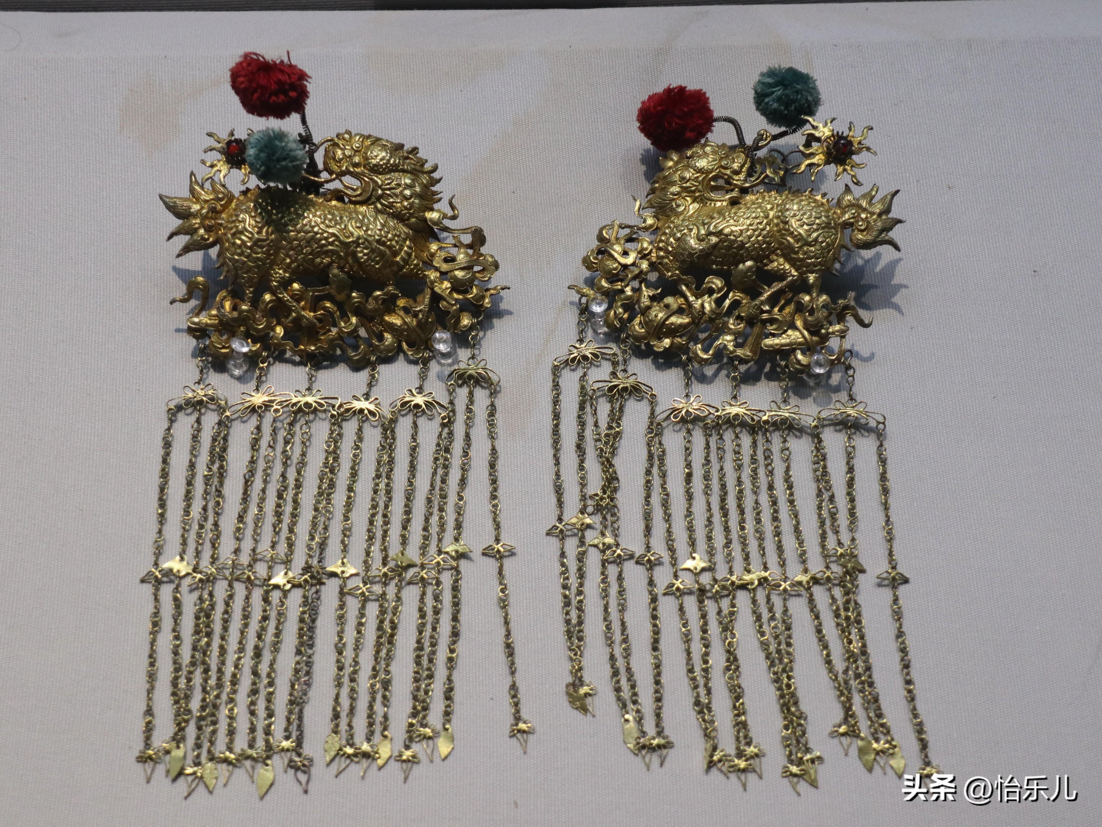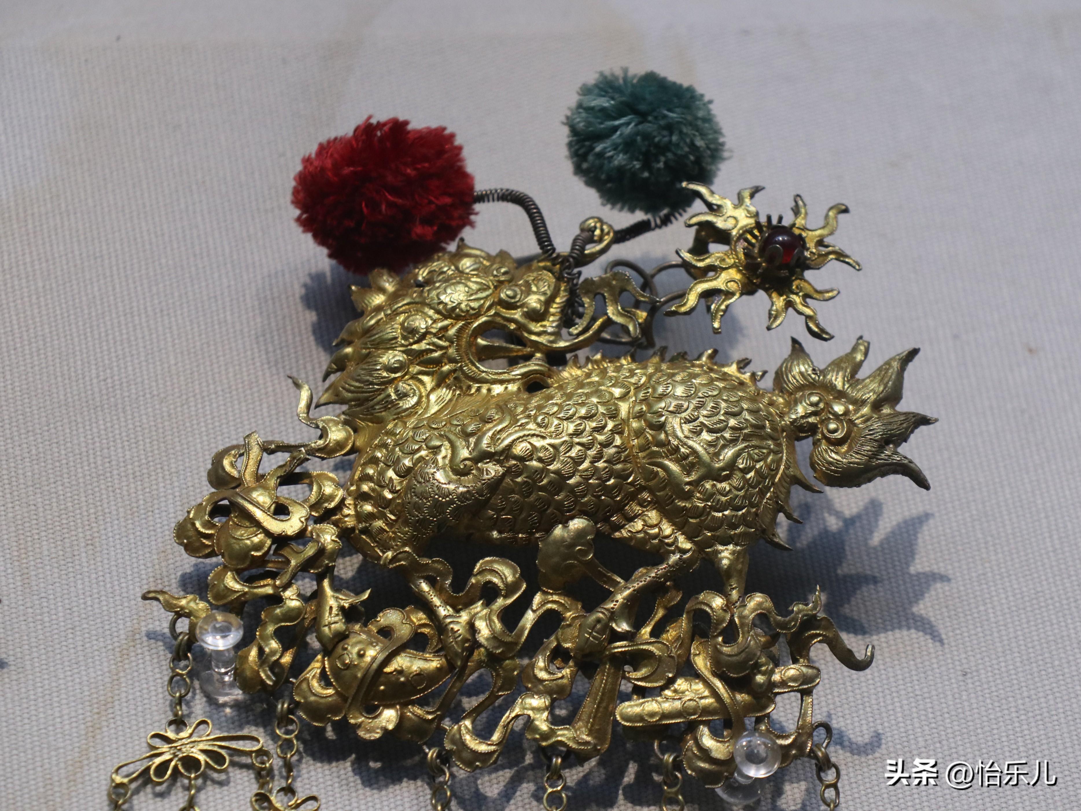 傣族银镀金麒麟戏珠头饰 清末(左重130克,右重128克)
