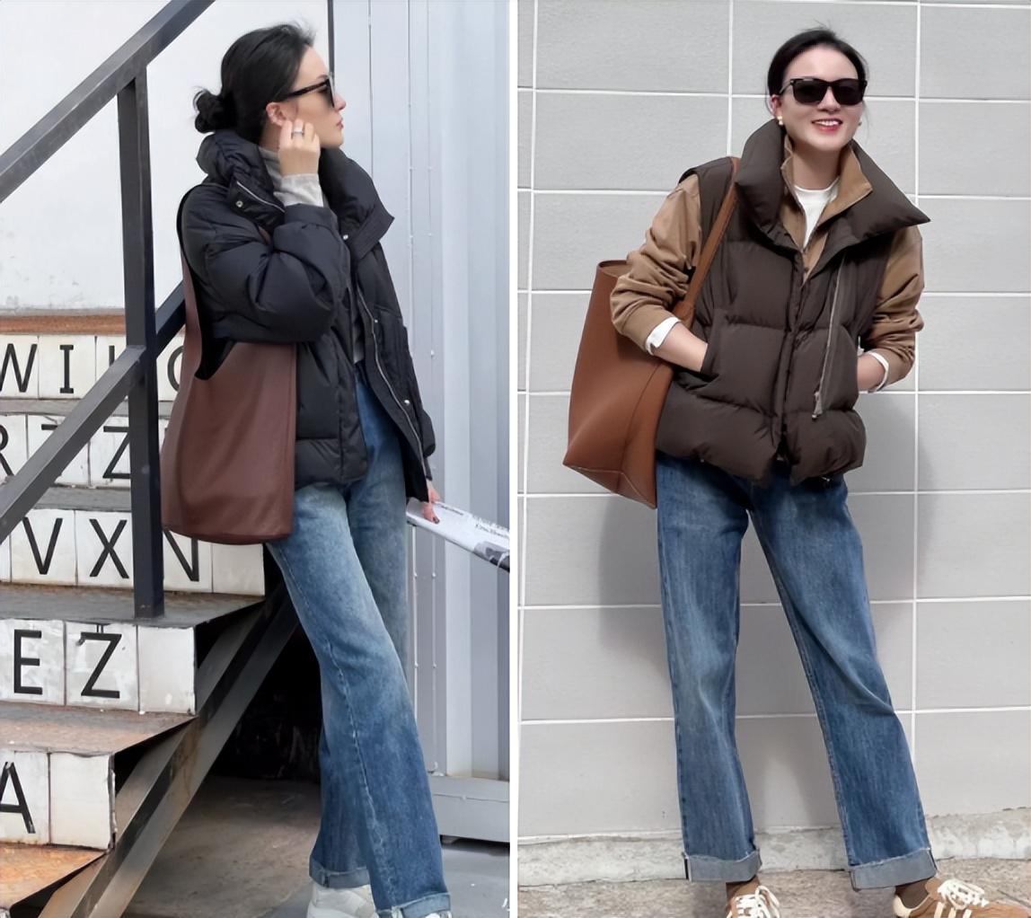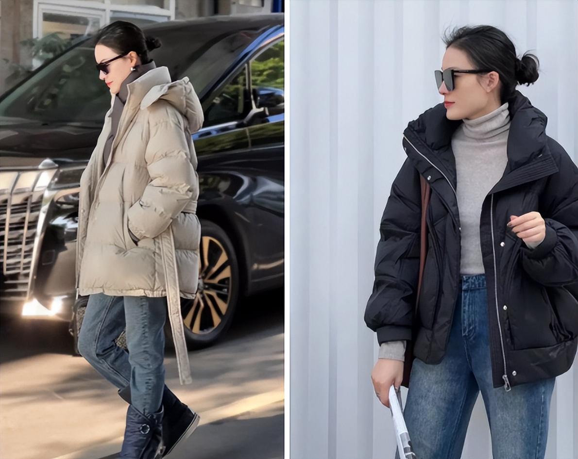 不过要注意,若是搭配阔腿裤、或宽松半身裙时,选择短款羽绒服会更好。另外要注意,当穿着深色羽绒服时,将头发扎起来会更加显精神。