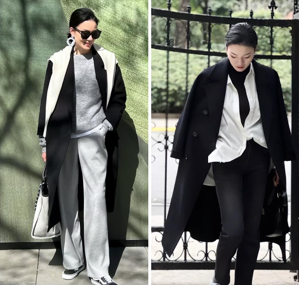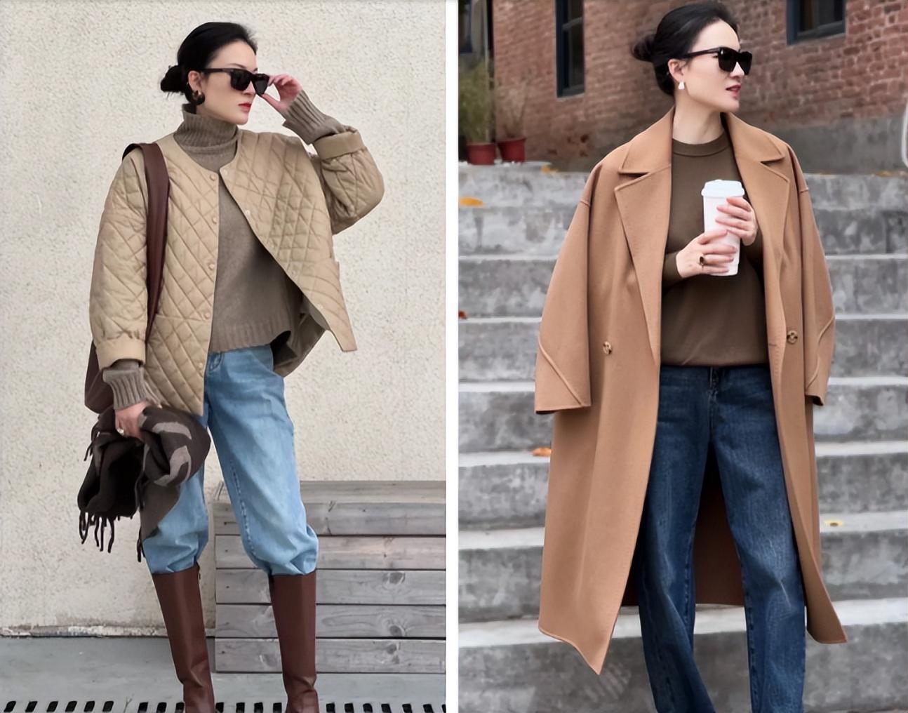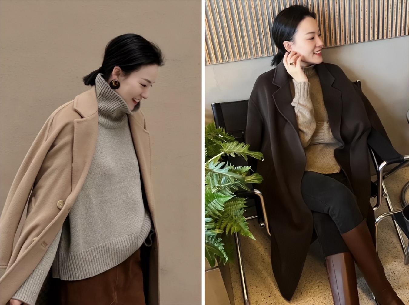 秋冬是呢大衣的主场,利用黑色、驼色、灰色等经典色彩,内搭一件针织衫,简约又显高级。不过需要注意呢大衣款式的选择,在版型上,一般来说选择H版型的适合大多数人,而若是你的腹部比肩宽,那么选择茧型(o型)版型会更显瘦,注意避开A字版型大衣,容易显拖沓显矮。