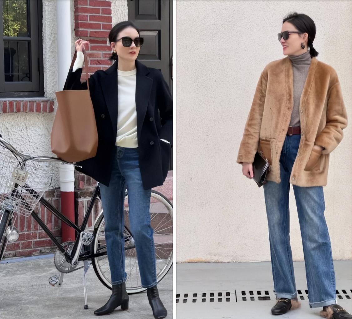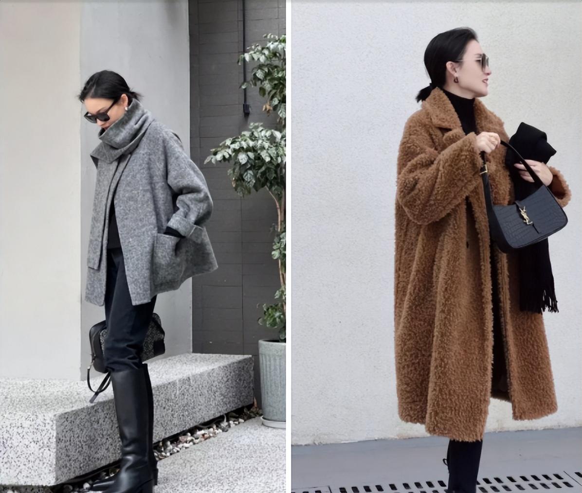 那首先我们在选择服装的时候就要注意避开多余设计的款式,选择简约、有质感的服装,例如羊毛、羊绒、仿皮草大衣,或是宽绗缝羽绒服等等。而穿着这些有厚重感的服装时,内搭要足够修身,搭配紧身裤、直筒裤或烟管裤等,上宽下窄看上去会更加利落显瘦。