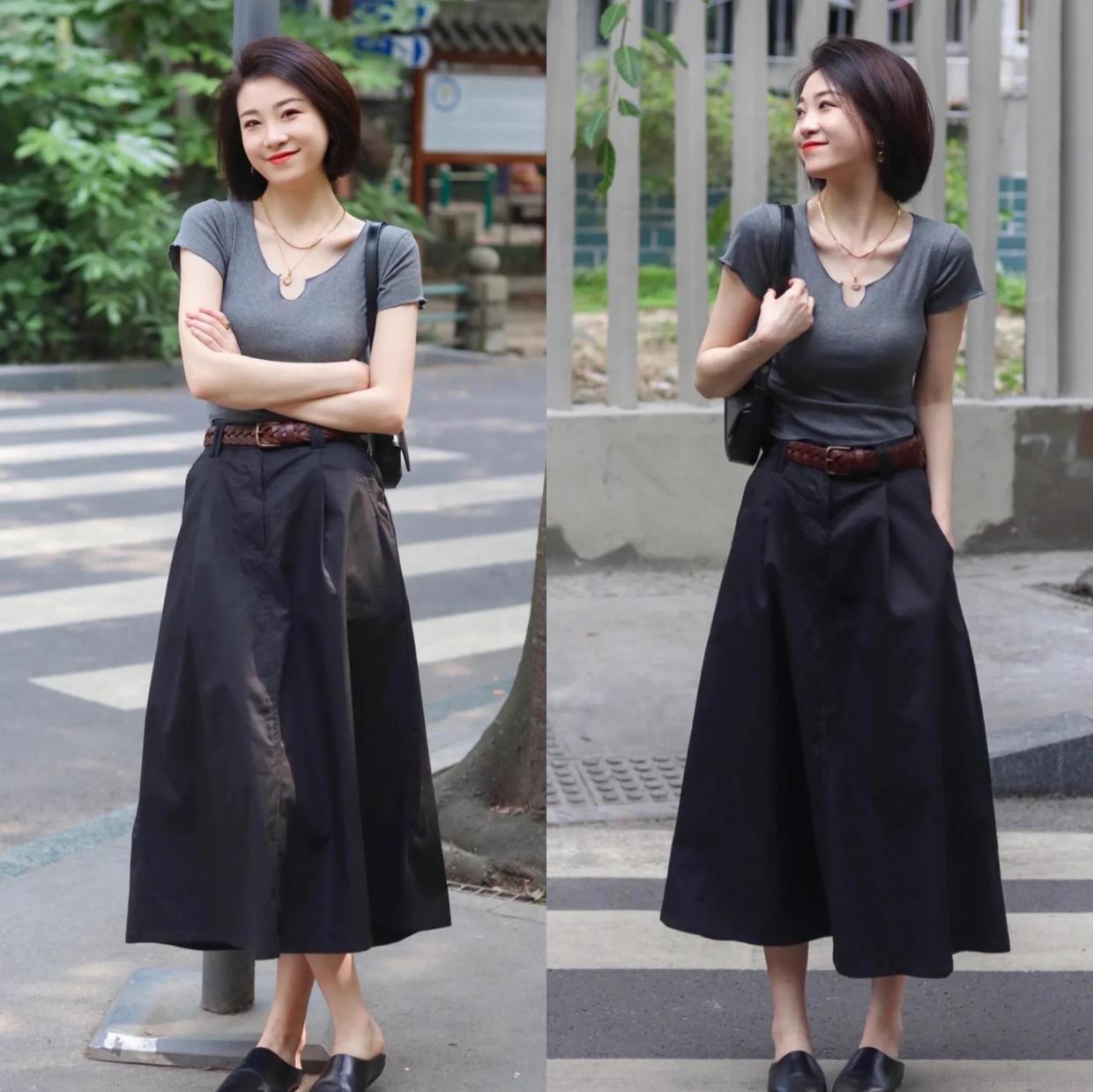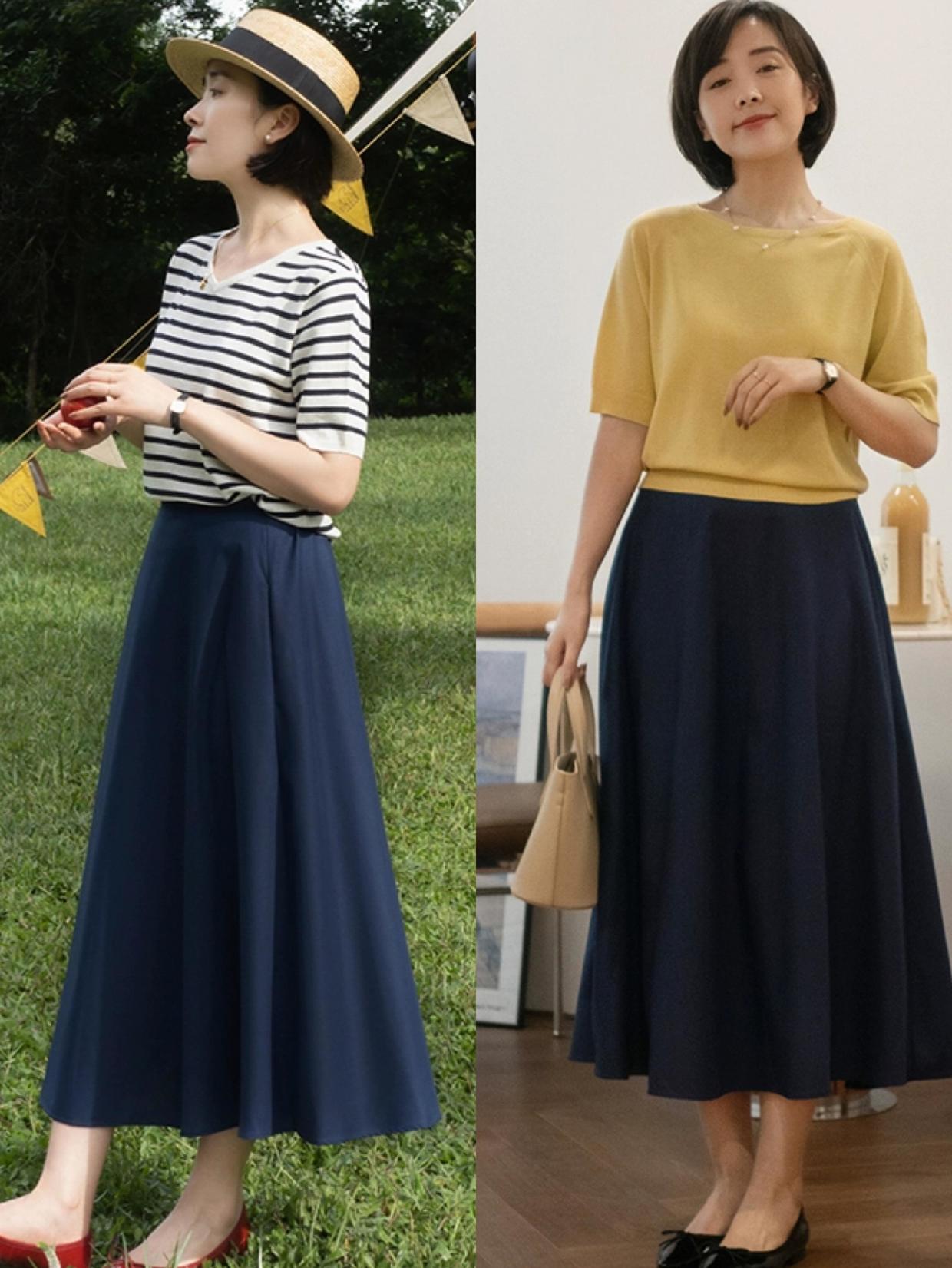 除了小黑裙,也有不少人喜欢穿半身裙,毕竟半身裙的可塑性更强,能够演绎出的风格种类更多,但裙子的版型有很多,比如直筒裙、伞裙、包臀裙、等,而其中要说为实用的就是A字裙了。