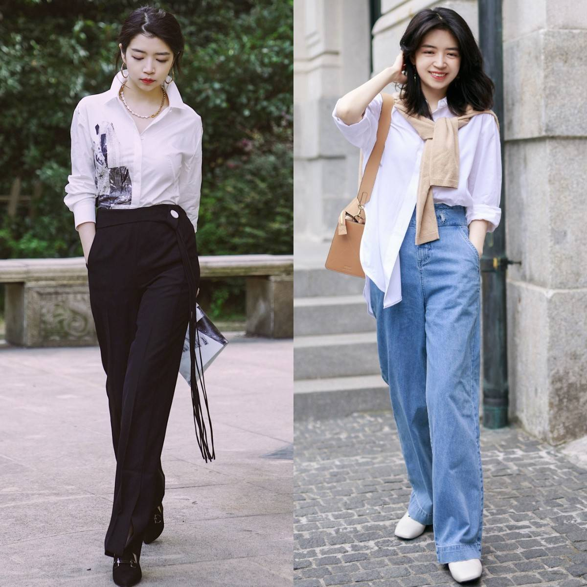 要想在日常里穿得更加随意休闲,那么可以把衬衫敞开穿,再搭配一件内搭,这样严肃感就会降低许多,或者是选择一件浅色系的衬衫,利用色彩为造型增添一丝时尚感,这样更符合日常的休闲氛围。