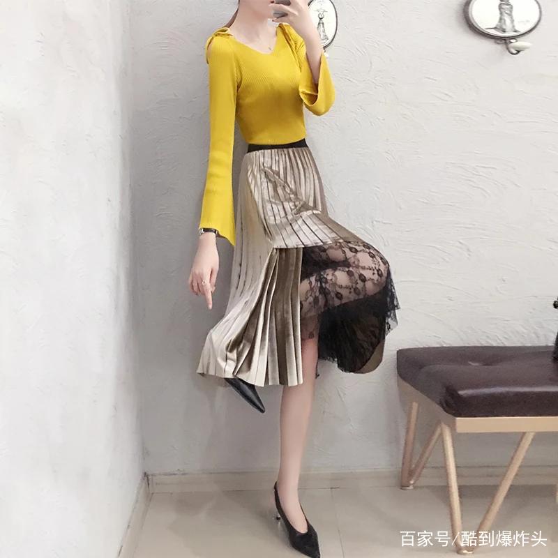 一款集复古与时髦的秋日套装,看似随意,却能穿出独特的味道,宽松版针织上衣,拼接了的花边设计运用在了领子与袖子上,V型领口拼接了花边的设计,增添了甜美的气息。袖口双层拼接设计,甜美浪漫。腰间螺纹收腰设计,松紧的弹力凸显出腰部曲线美。简约的纽扣和波浪结合的设计,带来撞色的视觉冲击。搭配不规则修身半身裙,腰臀部有微包臀的果,但不会太紧绷,这种设计显瘦,微胖的MM也不用担心会显肉哦!裙子侧边有纽扣装饰,不会显得太单调。