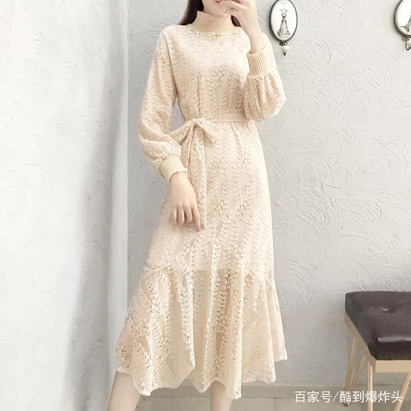 惹人喜爱的一件蕾丝裙,既能温婉动人,又可以休闲时髦!这款设计很大方,你们都能轻松掌控得了;针织螺纹设计应用在了领口与袖口处,气质女人中还带点休闲范儿!优美幅度的半高领,腰部顺手腰带的设计,在腰部一侧打个蝴蝶结,多了一份精致的柔美。参差不齐荷叶边的裙摆设计,带来时尚设计感的同时又巧妙的修饰身材,柔挺的褶皱感,优雅而灵动,走动间,露出的小腿有着不一样的美感。时尚元素依旧,细节感满满,气质百搭,胜任多个场合,穿出不同的气场。