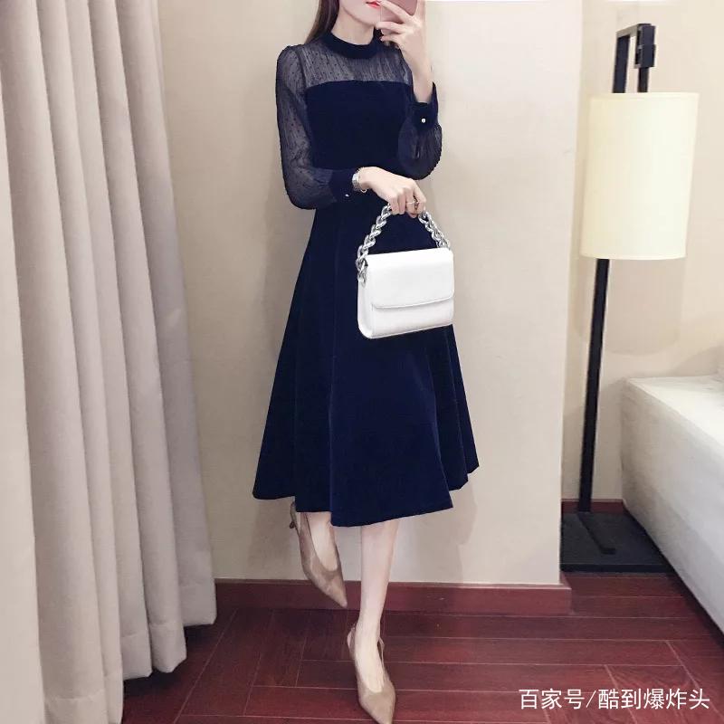 自带高贵感的一款长裙,结合拥有轻奢感的藏蓝色,集结了日常通勤的连衣裙与晚会的小礼服裙,精选比绒材质,拥有湿润的质地和绒绒的表面,手感与光泽感都华丽优雅。特别值得一提的是,肩袖的透视网纱设计,朦胧美增强女性的柔美气息与浪漫情怀。丝绒拼接的半高领设计,气质优雅,显得颈脖特别的修长。袖口处增添了纽扣的设计,很显高贵的气质,腰部也是根据女性的形体设计的,很好的衬托出了女性腰部的纤细。