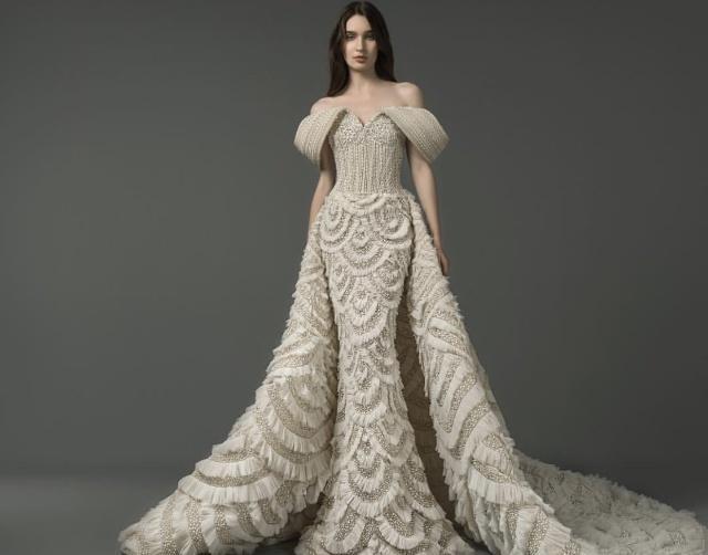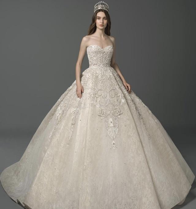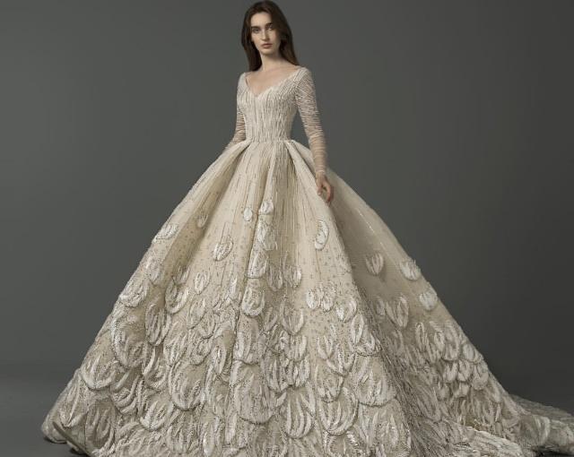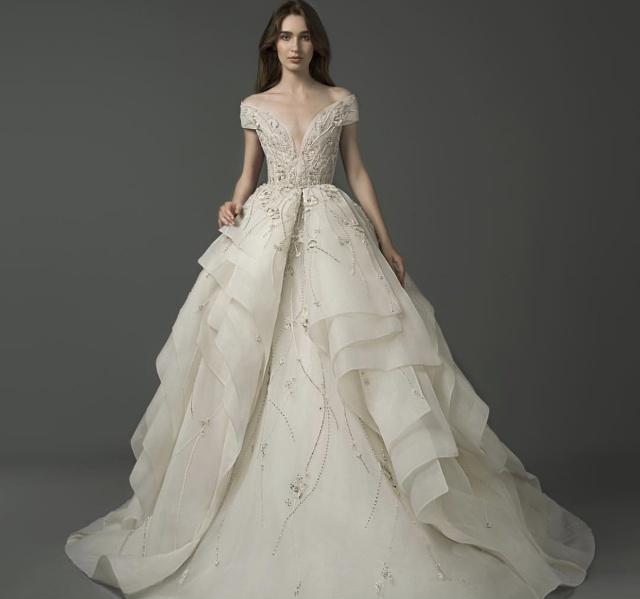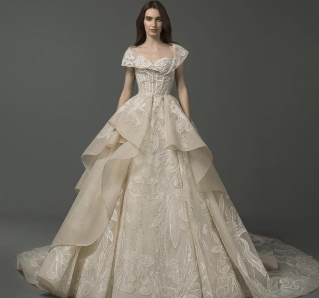 黎巴嫩仙牌婚纱Saiid Kobeisy以精致的工艺和典雅的设计出名,近年来廓型感婚纱礼服大受欢迎。虽然是中东品牌,在设计上也是结合流行趋势来考量的,刺绣蕾丝、缎面层叠、轻羽飞扬这些元素运用在简洁立体的廓形之中,充满惊喜与美好。