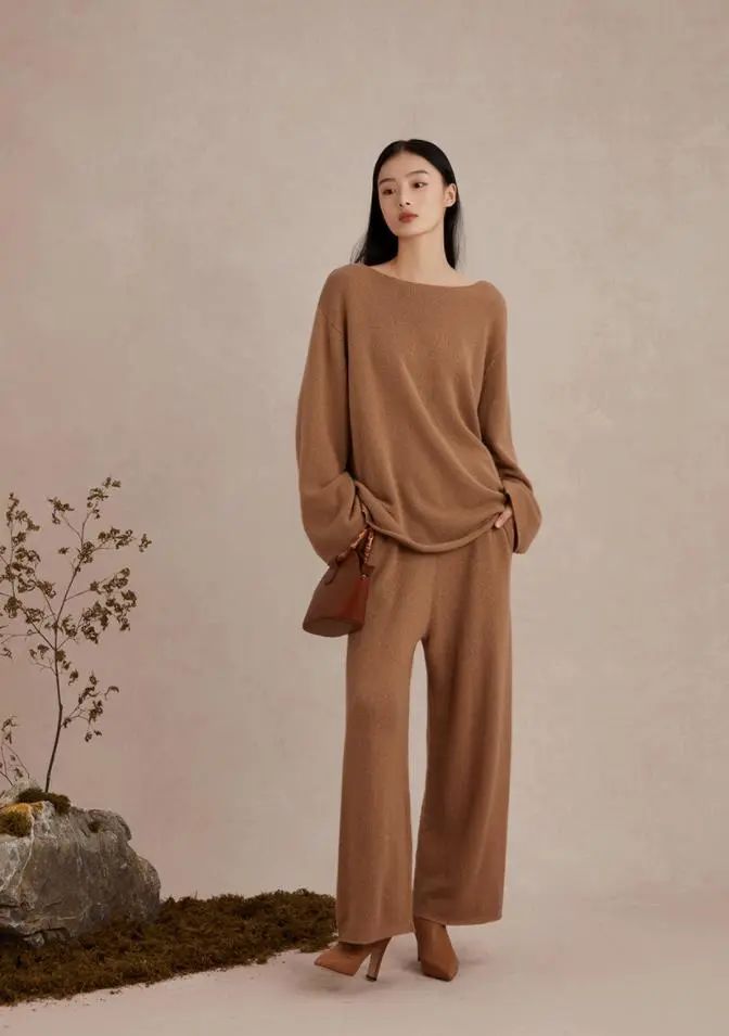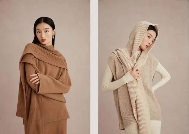 上服集团旗下品牌T&A(天嘉爱)的驼绒针织系列新品包含有围巾、背心、开衫、毛衣、阔腿裤5个款式,不仅款款设计考究,细节处也都体现着高级的质感。