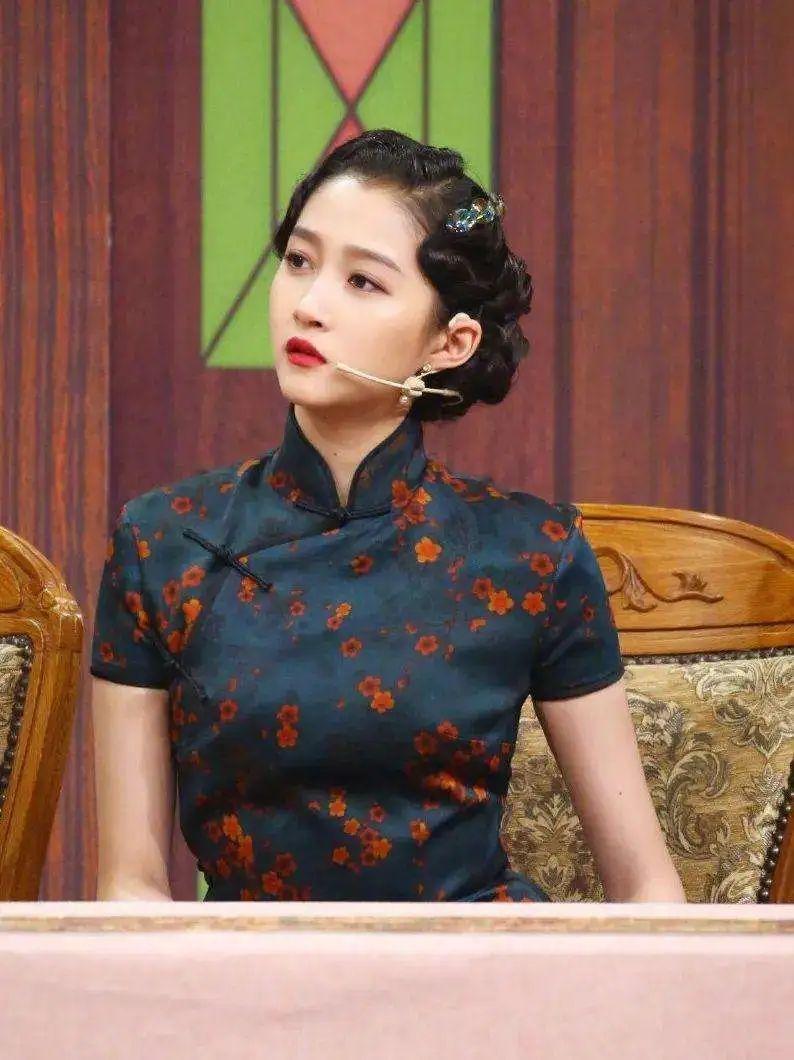 复古的卷发,珍珠项链加短袖旗袍,陈好的这身装扮像极了民国名伶,有种优雅妩媚的气质,媚而不俗,艳而不妖。