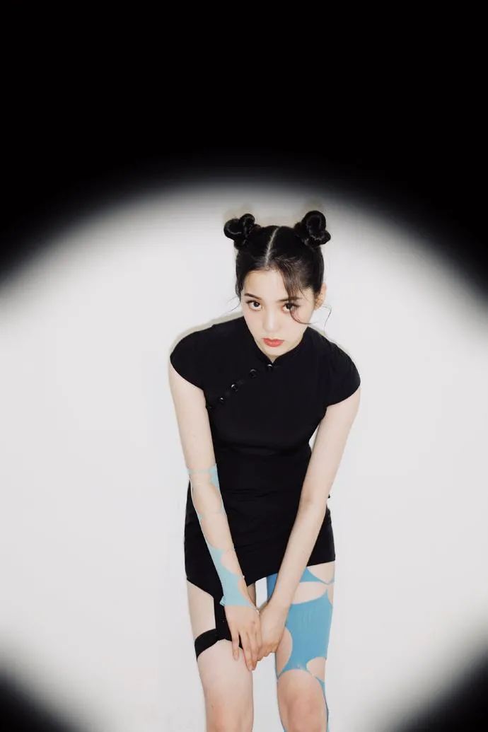 过高的身材让旗袍对身体曲线的展示成为劣势,尤其在做性感造型的时候,关晓彤的旗袍照更像是短视频中拉腿过度的网红。