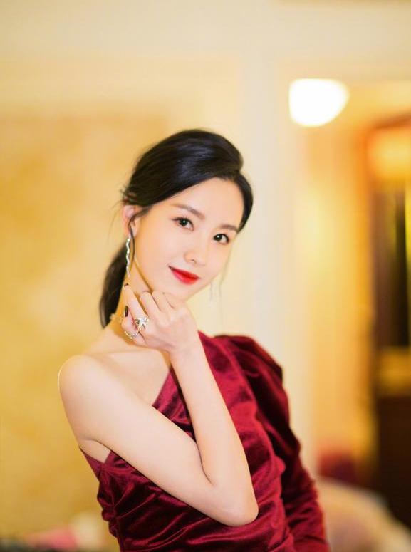 酒红色的服装不用多说,复古气息是妥妥的,而陈都灵的这款结合了半露肩设计,所以看起来比较显年轻,但另一半的肩膀处结合了泡泡袖,与酒红色的颜色特征倒是不冲突,再加上这款波浪形状的耳环,虽然外形很有流动感,但毕竟材质偏硬,所以优雅的同时也很时尚。