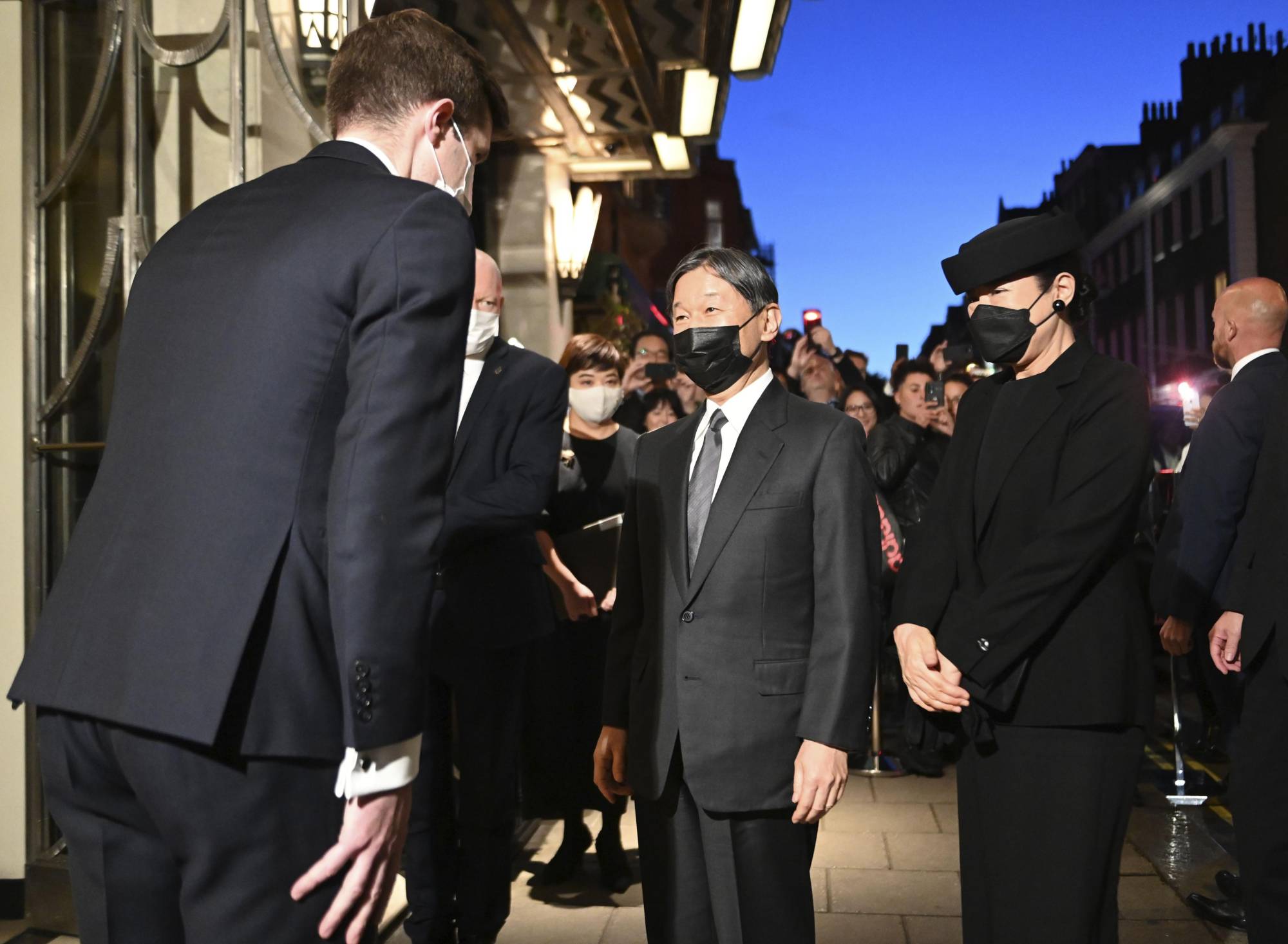 除了金建希之外,出席女王葬礼的还有一场亚洲面孔,那就是日本皇室的雅子皇后。女王去世,世界上其他王室很多都派人来参加葬礼,日本天皇和皇后也来了。而从造型上看,金建希似乎是要完胜雅子皇后了。