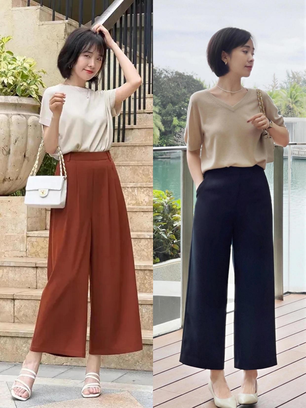 当然,裤装的搭配也是不可忽略的,毕竟在夏天大家也希望能够满足防晒的需求,这个时候用一条高腰的阔腿裤去搭配一下也是很显瘦的,配上短款的T恤,再结合上高跟鞋也可以帮助你去拉伸腿长,体现出大长腿。