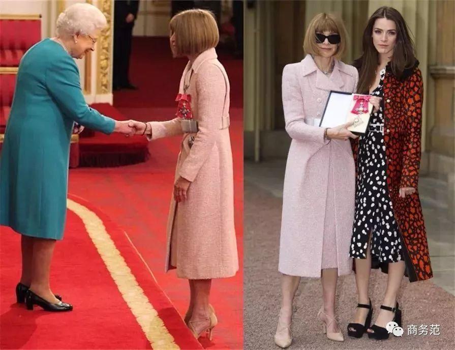 比如在白金汉宫接受女王授勋时,一向喜爱MB的她依然穿着它家的高跟鞋,但由于场合原因,换成了不露脚趾的款式,搭配Chanel粉色大衣,优雅大方又合礼仪。