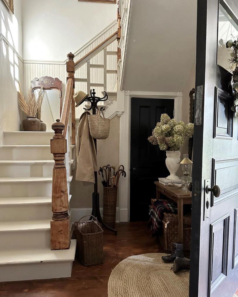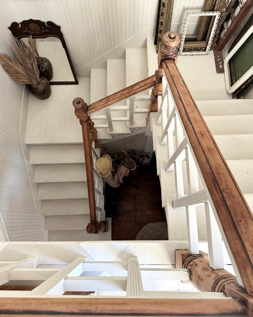 从楼梯也可以看出这个房子的简单装饰方式,墙面与老旧的台阶刷了一层白漆,扶手保持了原来的木头本色,置于角落的家具也是一些旧木制家具,保持着本色,整体看起来很整洁,也很有质感。