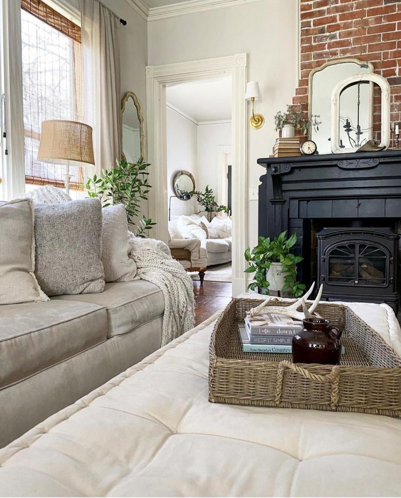 壁炉经过了改造,原本的红砖墙也被主人用涂料粉刷,虽然少了一些工业感,但是整体更加简洁明亮了。旧的木地板经过一些处理重新焕发光彩,再点缀一些植物,整个客厅带着质朴的美式田园风,令人感到轻松自在。