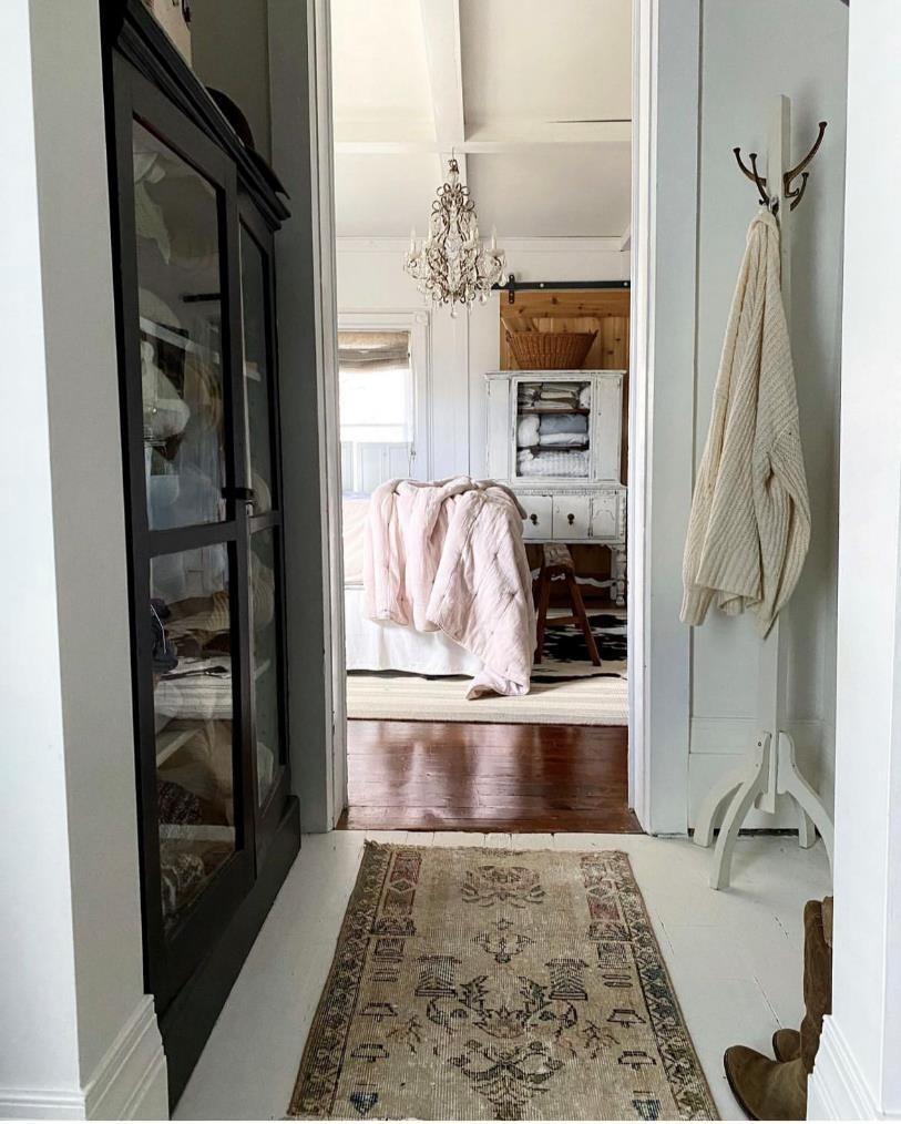 二楼的过道空间也利用得很充分,有照片墙,转角处也有旧货市场淘来的收纳柜。女儿们浴室的门口还有自己做的挂衣架,从简单平凡的日常里,看到了内心的充实。