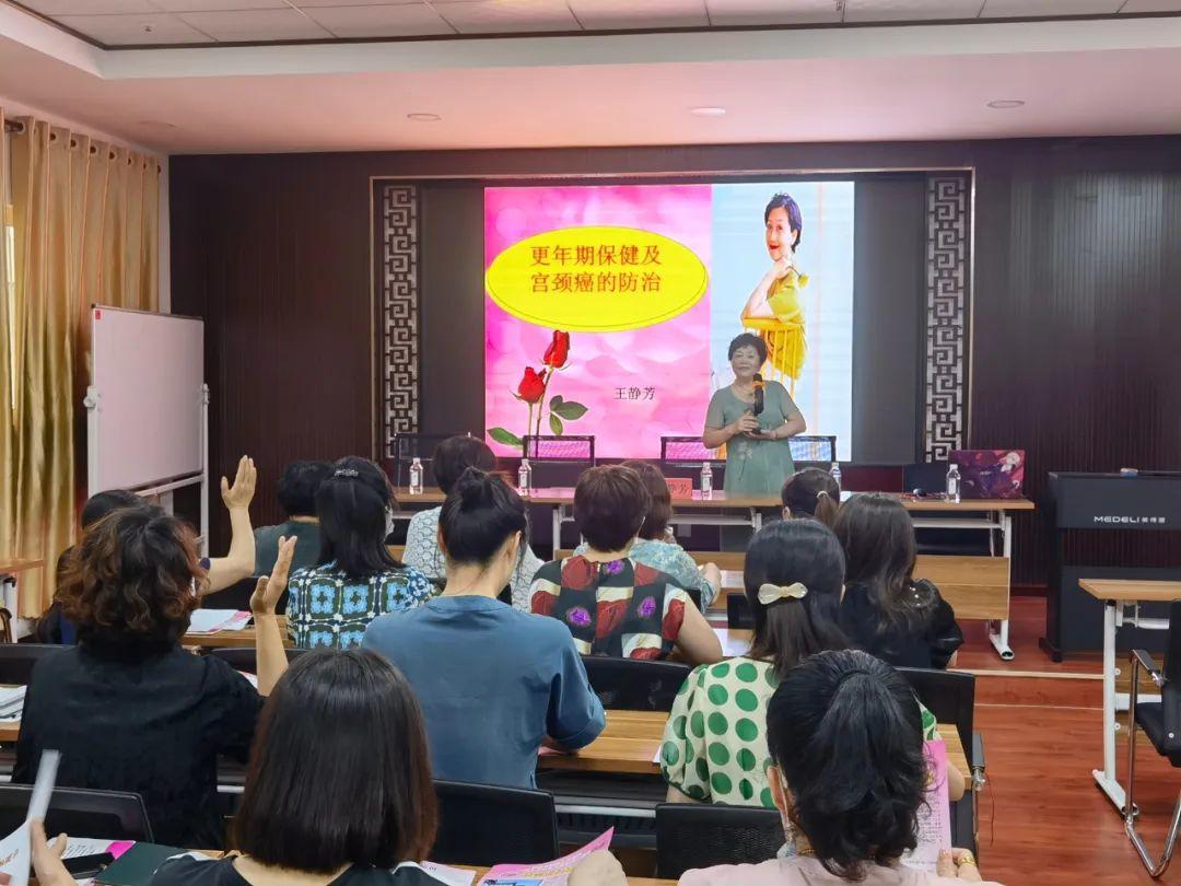 紧接着,北京专家王静芳教授开始讲课。她围绕更年期保健、常见妇科病简介、宫颈癌防治等方面展开了一个半小时的系统阐述。上述三个内容涉及每一位妇女的身心健康问题,普及性广、实用性强、专业性高,为广大妇女的健康提供了有力的理论支撑。王教授表示,疾病重在预防,广大妇女同志们要高度重视自身健康,定期前往正规医院筛查两癌,保持正确的生活方式,避免小病变大病。