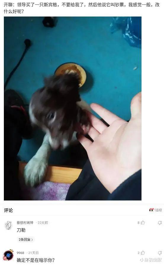领导买了一只史宾格,不要给我了,然后他说它叫钞票,我感觉一般,改什么好呢?